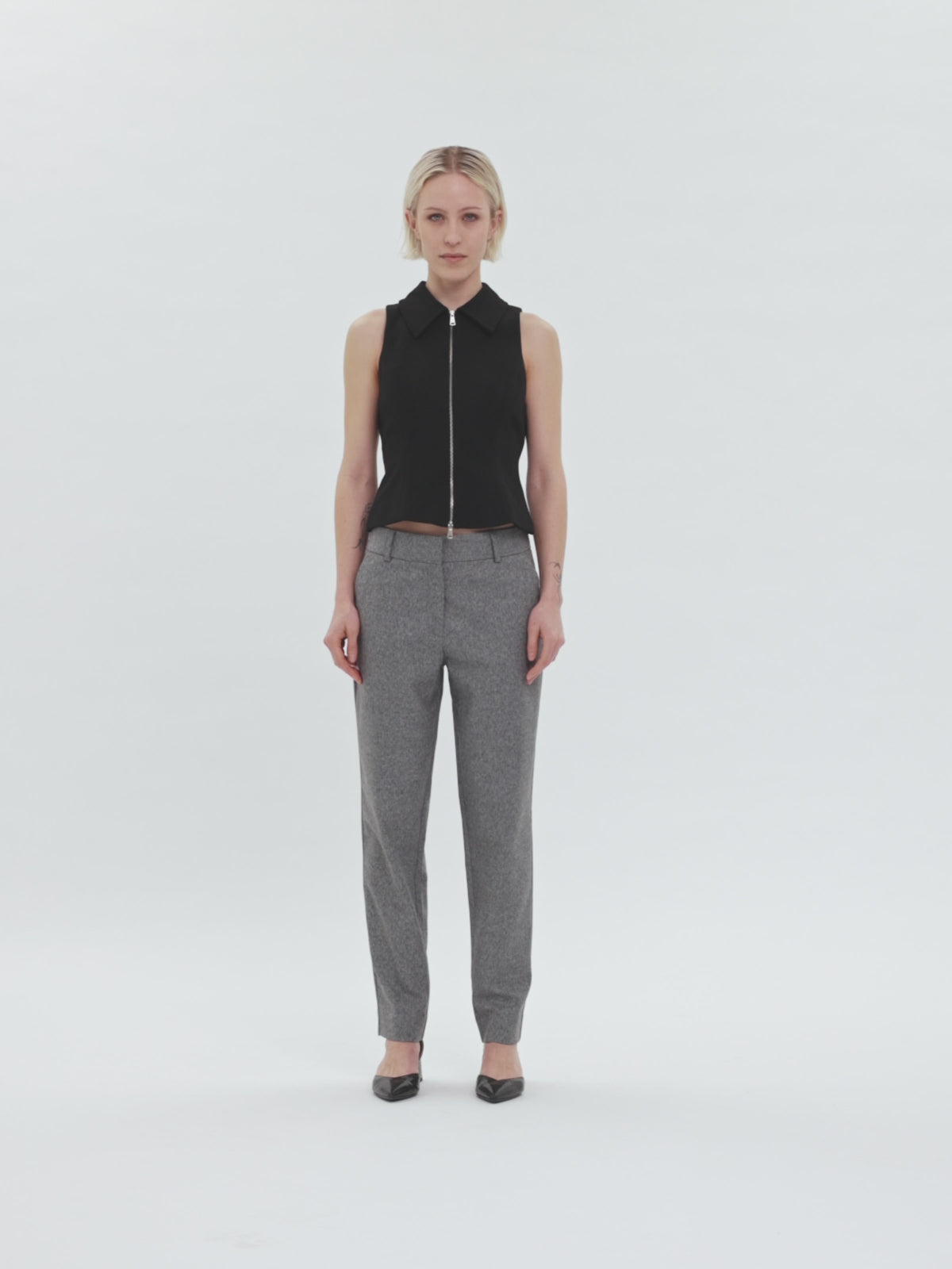 KaisaFV er elegante, tilspidsede bukser, designet til at skabe en flatterende silhuet. Den mellemhøje talje giver en behagelig pasform, mens den regulære længde fremhæver benenes naturlige form. Den tilspidsede facon sikrer en tidløs stil, der kan styles både formelt og afslappet. Perfekt til alt fra kontoret til en aften ude, KaisaFV kombinerer komfort og moderne design med klassisk finesse. Designet i København, og fremstillet af specialister i Tyrkiet.
