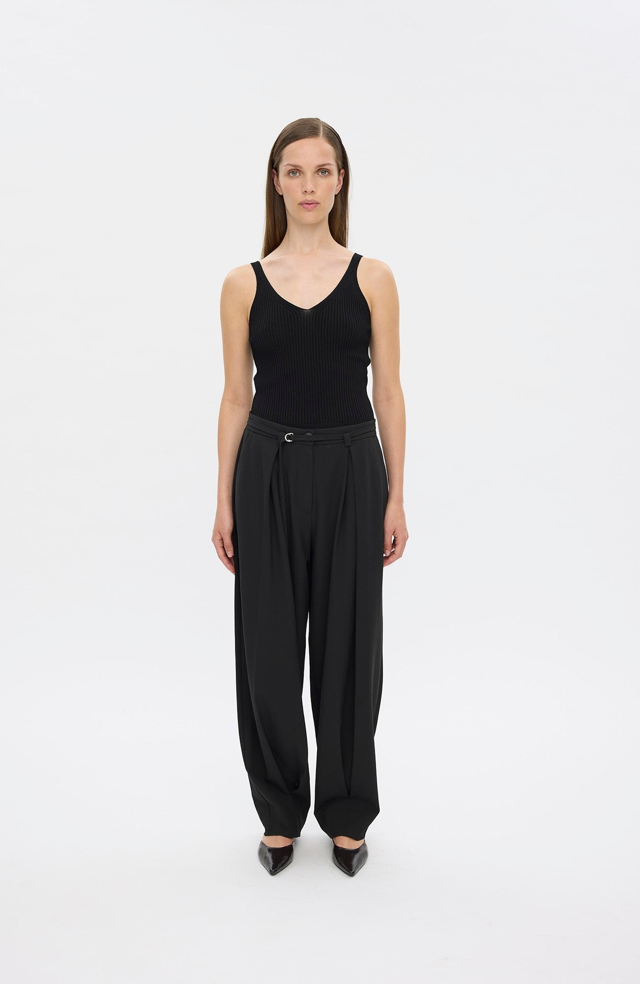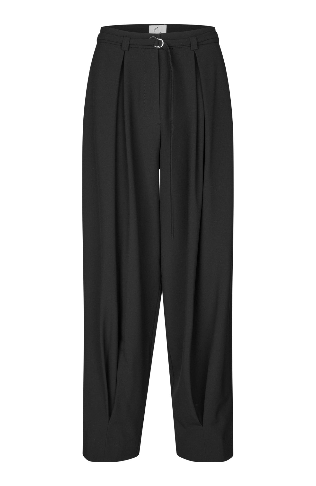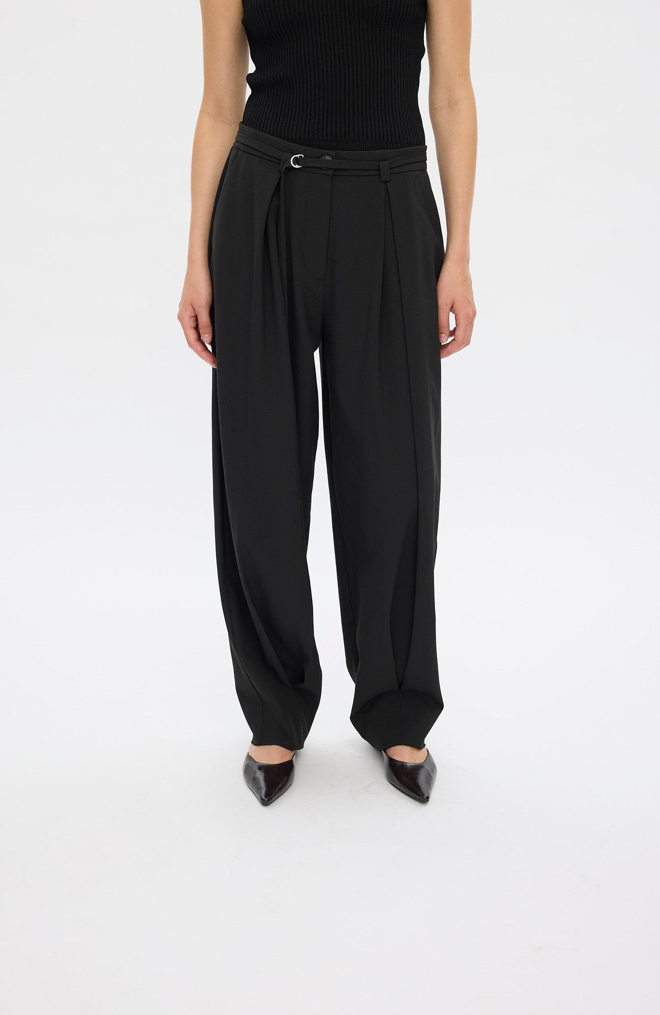 Relaxed mid-rise trousers with a dropped crotch and barrel-leg silhouette. Tailored front pleats at waist and at hem, and a D-ring belt for a modern twist. Designed in Copenhagen and made by specialists in Turkey.
