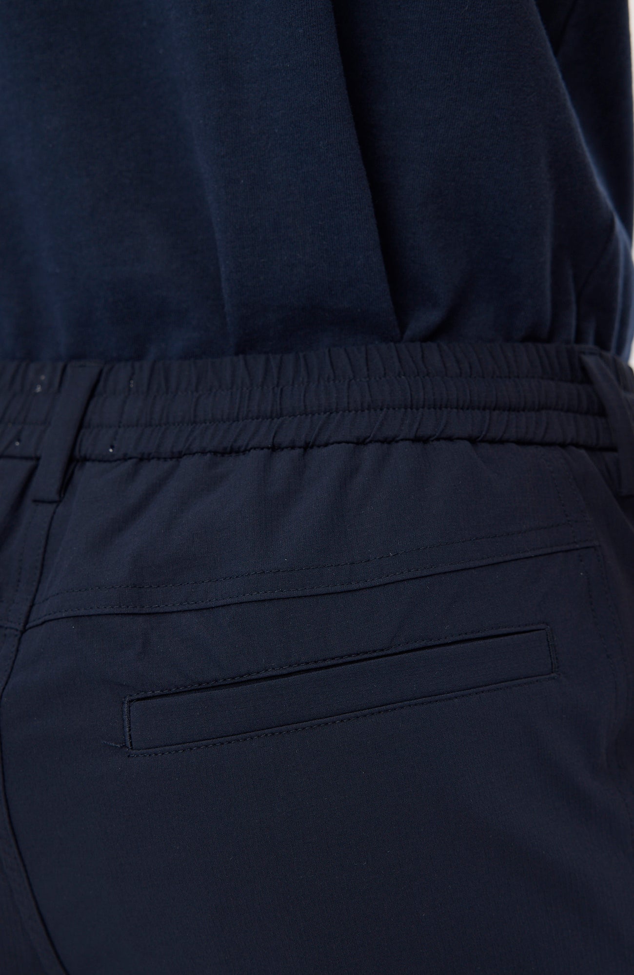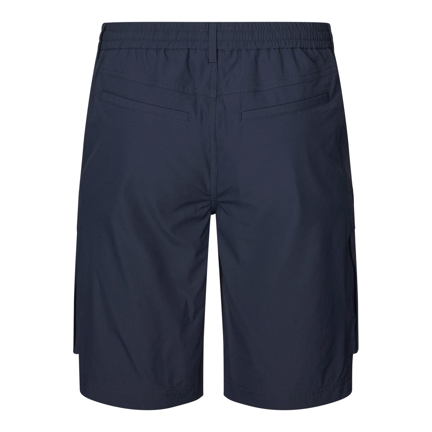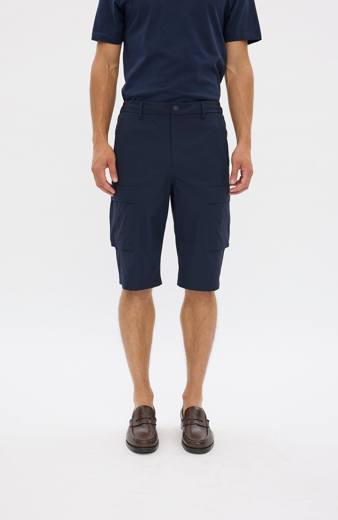 Rent skårne cargoshorts med lige pasform og mellemhøj talje. Funktioner inkluderer integrerede cargolommer, skrå sidelommer, delvis elastisk linning og bæltestropper. Designet i København.