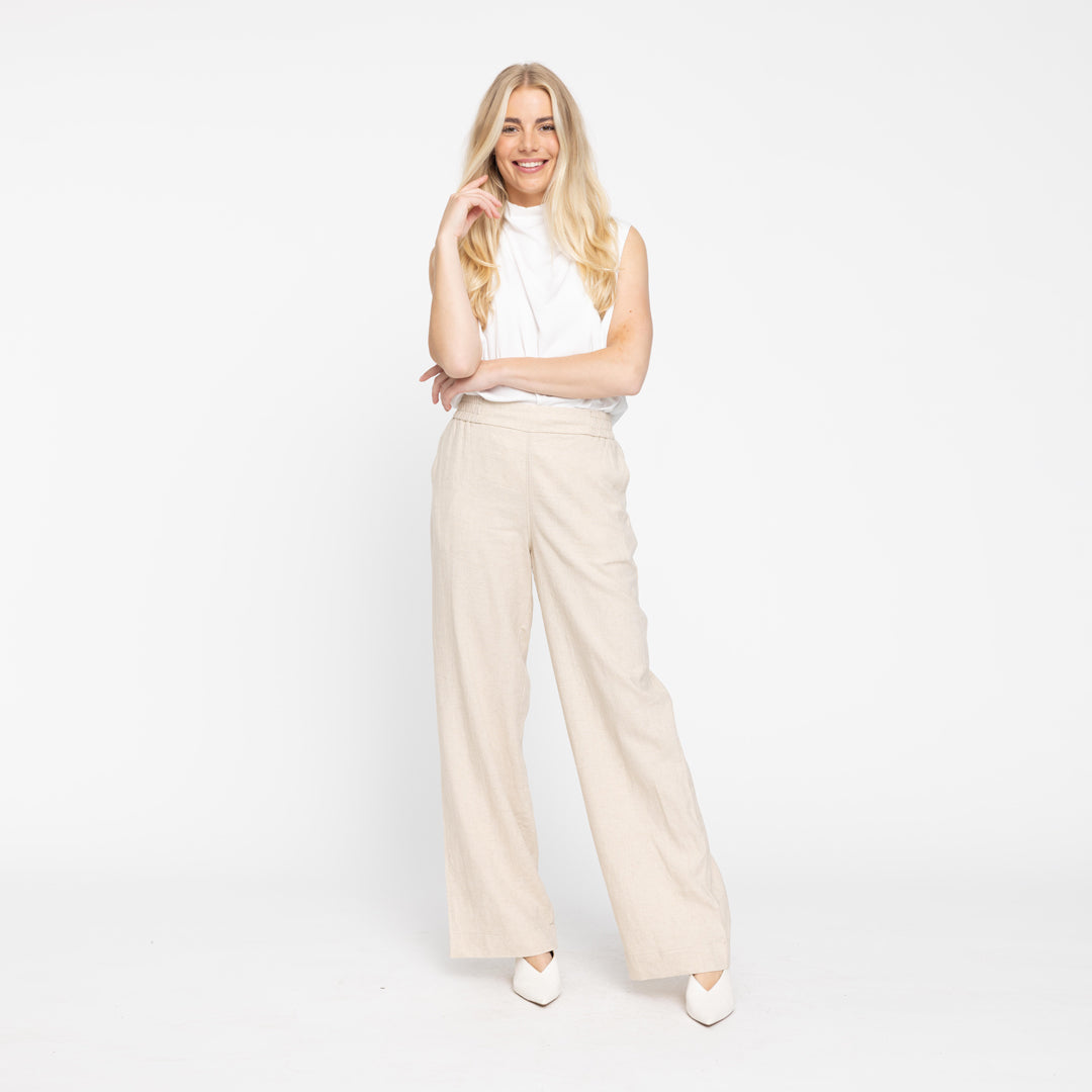 Linea 763 er 'wide-fit' bukser lavet af sprød hørblanding med en fin struktur. De er mellemtaljede og formet til at sidde på dine hofter og være rummelige omkring taljen, hofterne og lårerne. De let tilgængelige skrå frontlommer, en påsat baglomme, elastik i taljen og snøre understreger deres ubesværede natur og enkelte udtryk. Designet i København og lavet i Kina.