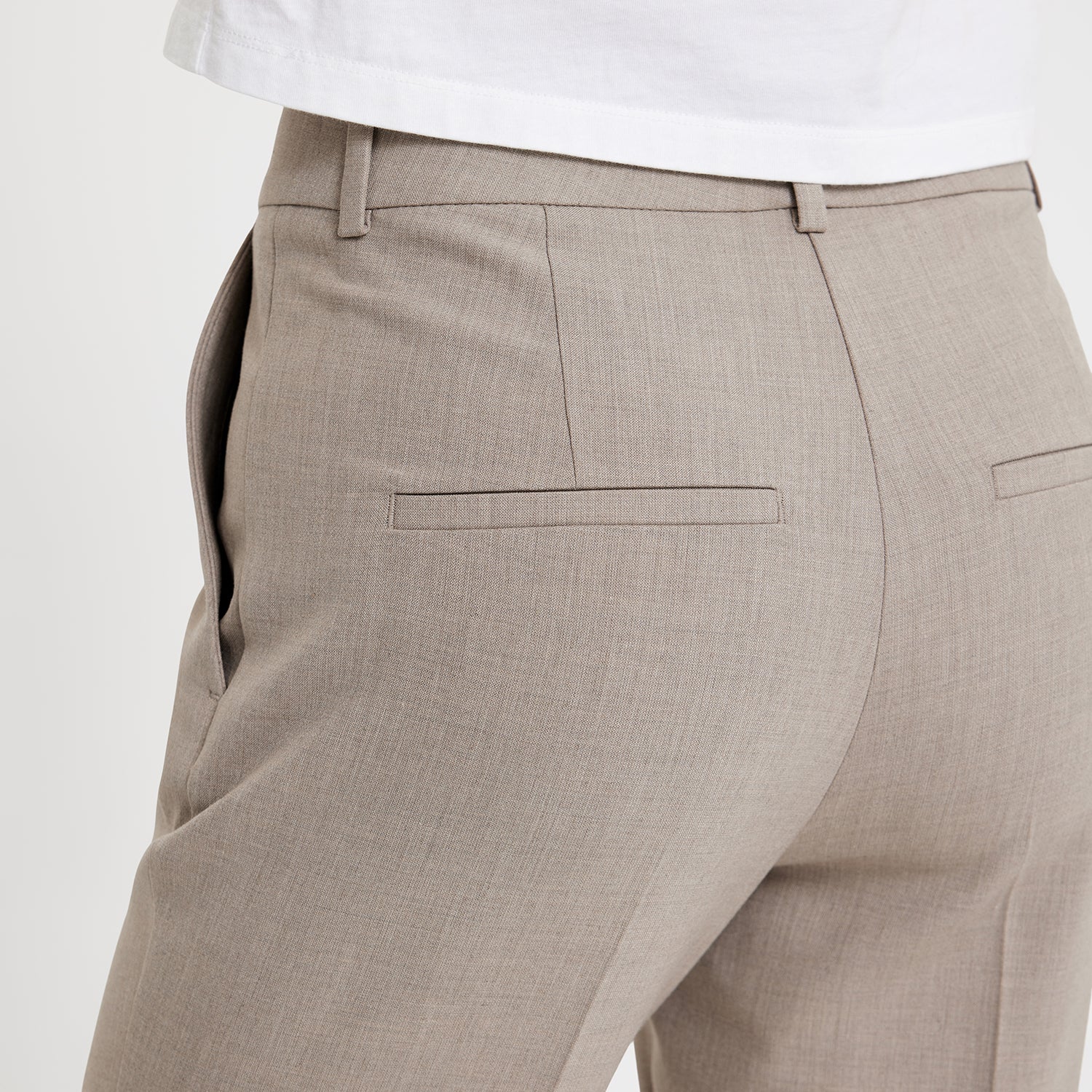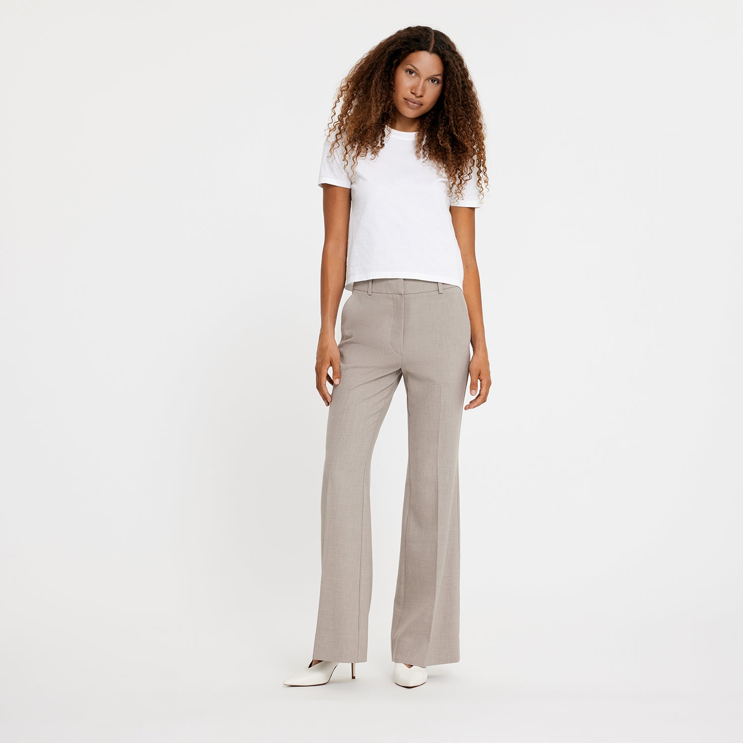 OliviaFV er 'flared-fit’ bukser i et klassisk design. De er højtaljede og formet til at sidde på din talje, fremhæve dine hofter og lår og udvide sig fra lige over knæene. Pressefolder, flotte ben og en klassisk silhuet gør dem til et alsidigt valg, der kan styles på mere end en måde. Designet i København og lavet af specialister i Tyrkiet.