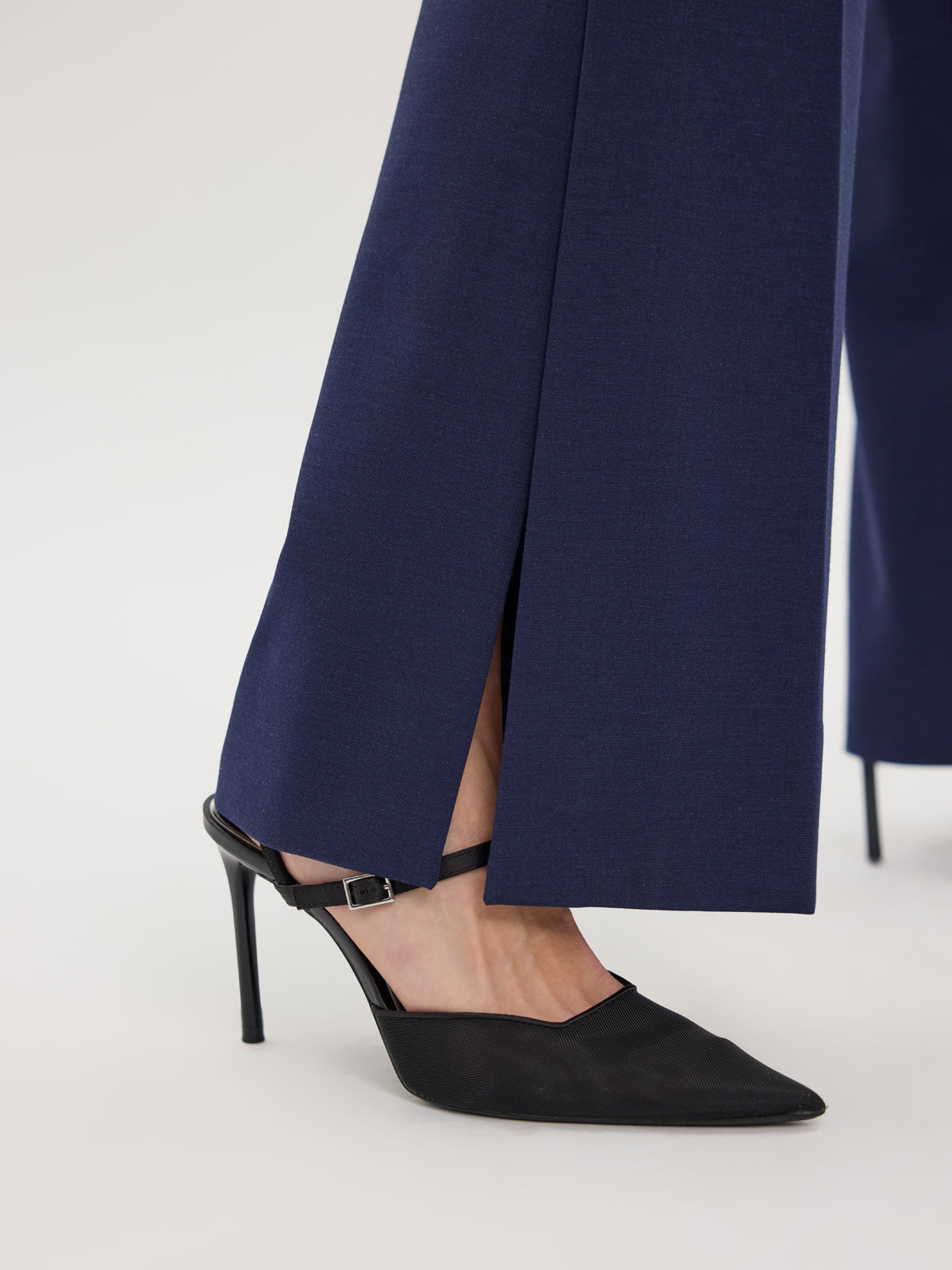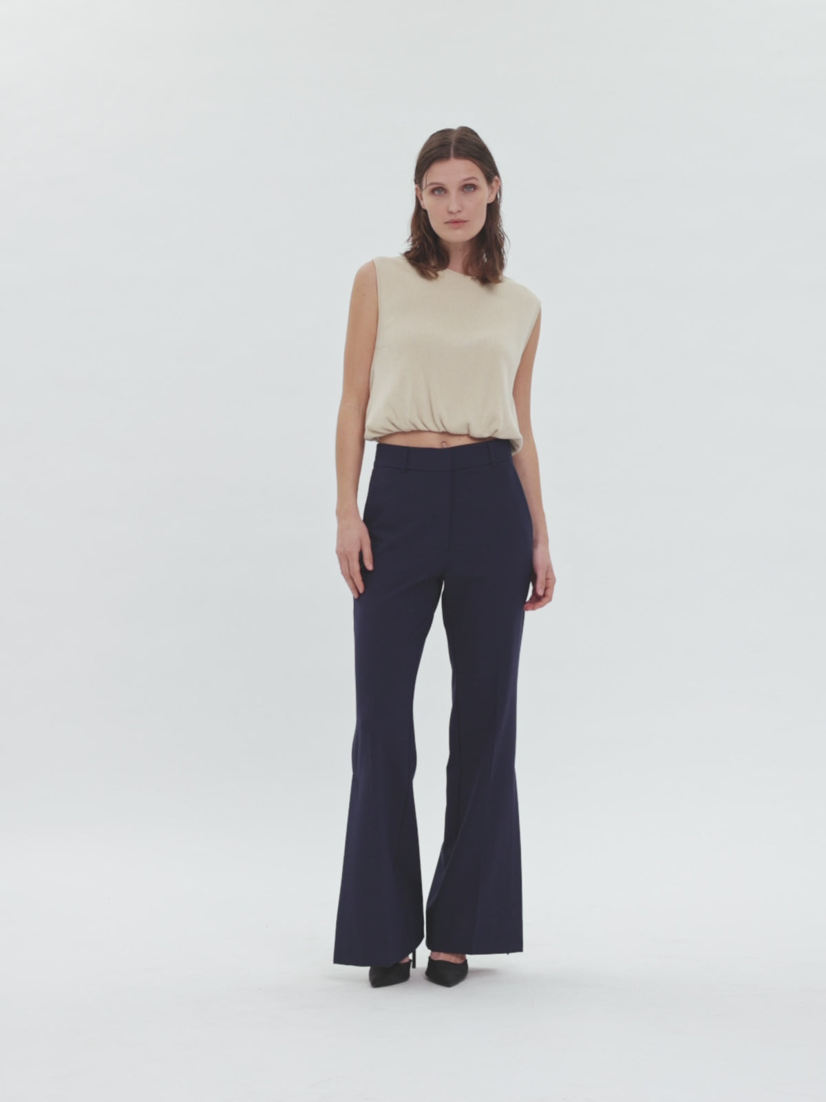 OliviaFV er 'flared-fit’ bukser. De er højtaljede og formet til at sidde på din talje, fremhæve dine hofter og lår og udvide sig fra lige over knæene. Pressefolder, flotte ben og en alsidig silhuet gør dem til et alsidigt valg, der kan styles på mere end en måde. Designet i København og lavet af specialister i Kina.
