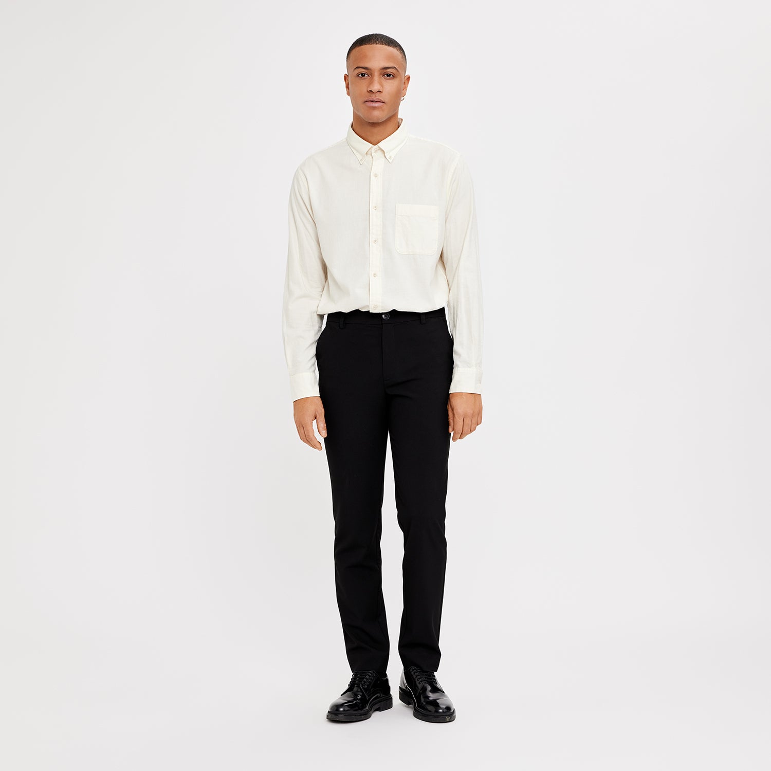 Oscar 285 er 'straight-fit‘ bukser lavet af elegant lærredsvævet stof i et klassisk design. En simpel konstruktion uden unødvendige detaljer understreger deres minimalistiske og tidløse stil. Bukserne har to skrå frontlommer, to dobbelt paspolerede baglommer, bæltestropper, knaplukning og lynlås. Designet i København og lavet af specialister i Tyrkiet.