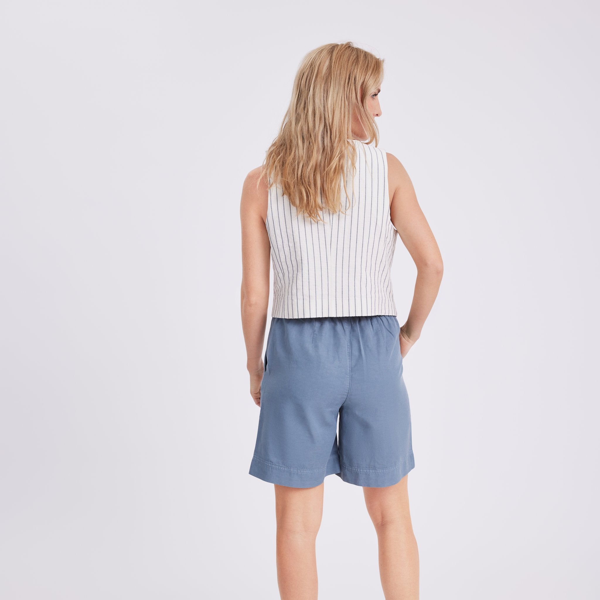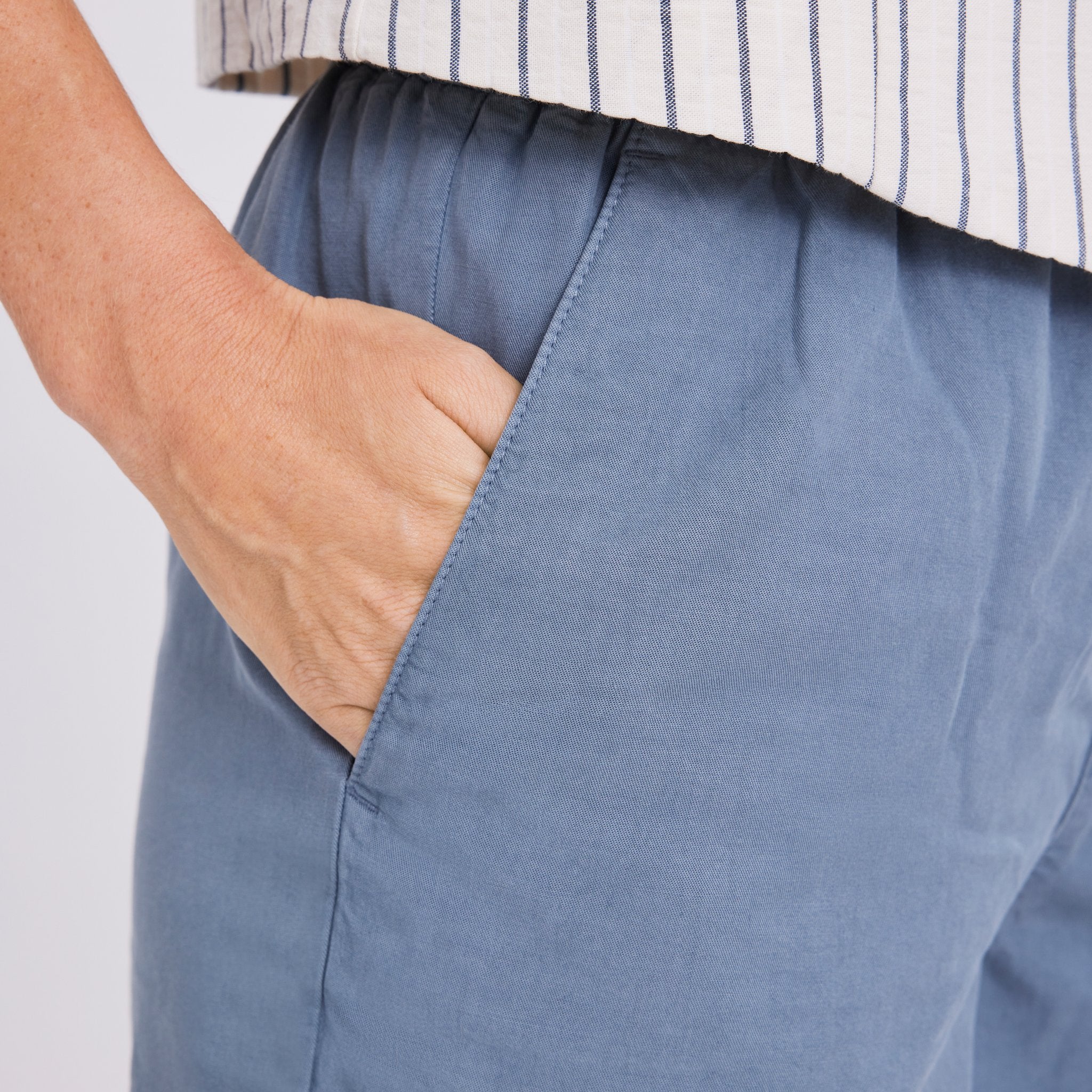 PaulaFV er en hverdagsstyle, som kan dresses op eller ned, og de har en fleksibel elastik i taljen med snøre, som gør dem nemme at trække på og justere, så de passer. Minimale detaljer omfatter praktiske skrålommer i siden. Designet i København og fremstillet af specialister i Tyrkiet.