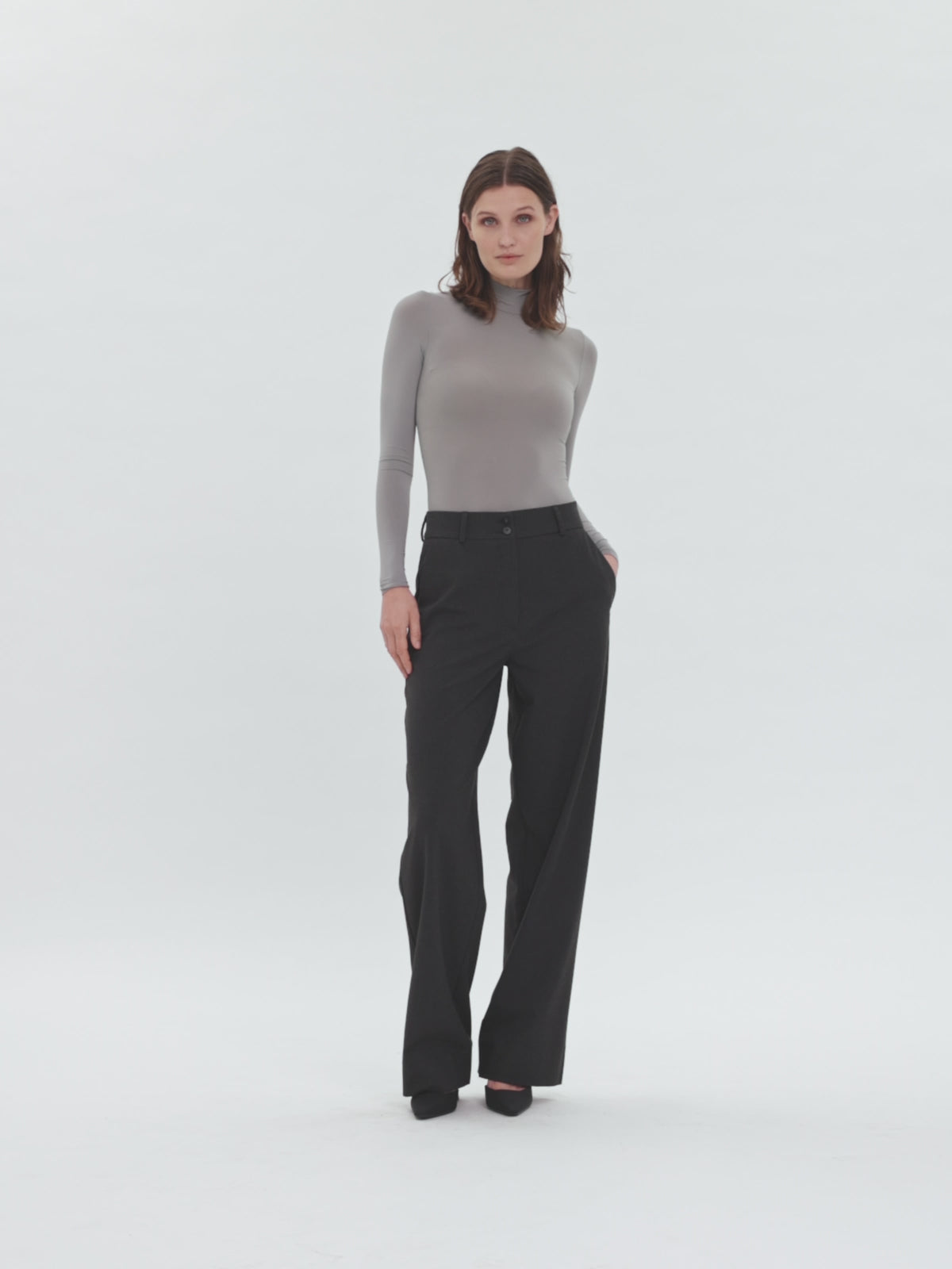 SophiaFV er bukser med bred, lige pasform. Da de er højtaljede, har vi formet dem, så de sidder tæt på taljen og hofterne og intet andet. De har smukke, lige ben med et elegant fald. Designet i København og fremstillet af specialister i Tyrkiet.