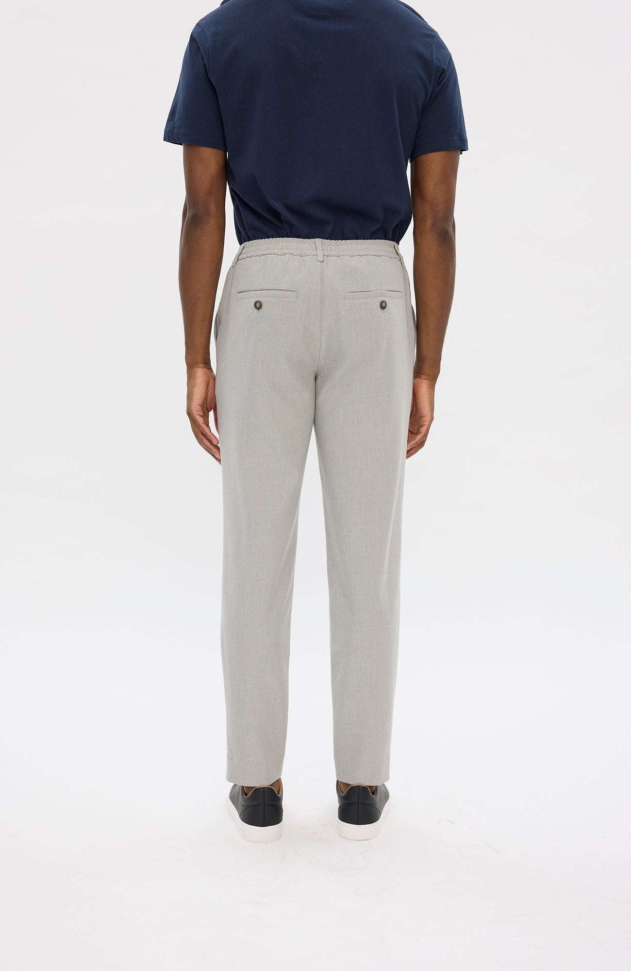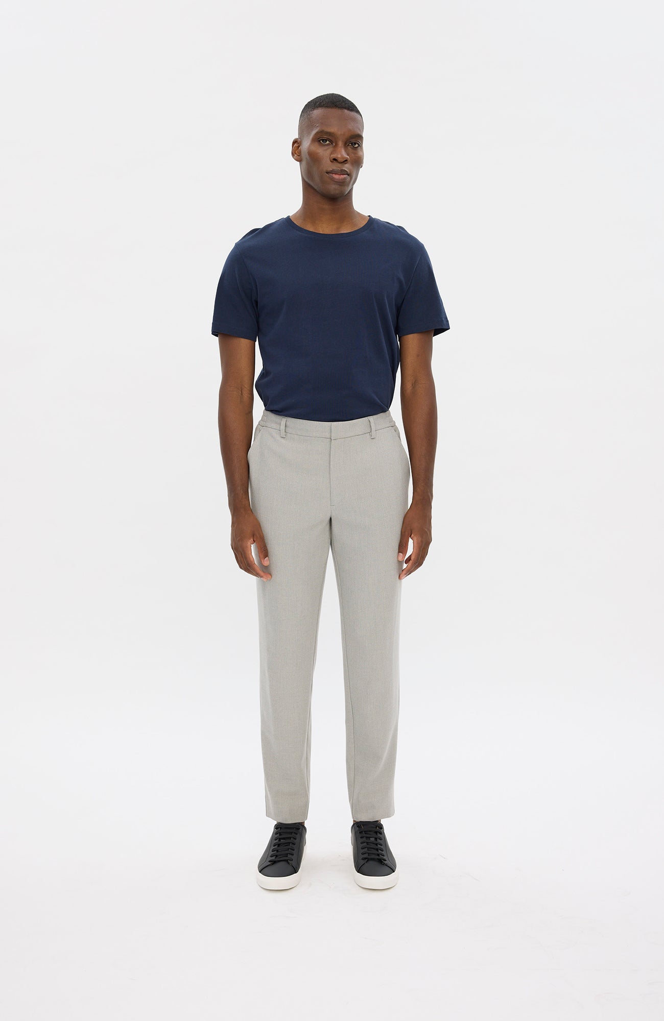 TheoPL are tapered trousers designed to sit mid-waist. Detailed with the hallmarks of tailoring, including front slant pockets, back welt pockets and a concealed hook and bar fastening, the versatile pair feature an elasticated back waistband for added comfort and are equally suited to casual and formal occasions. Designed in Copenhagen and made by specialists in Turkey.