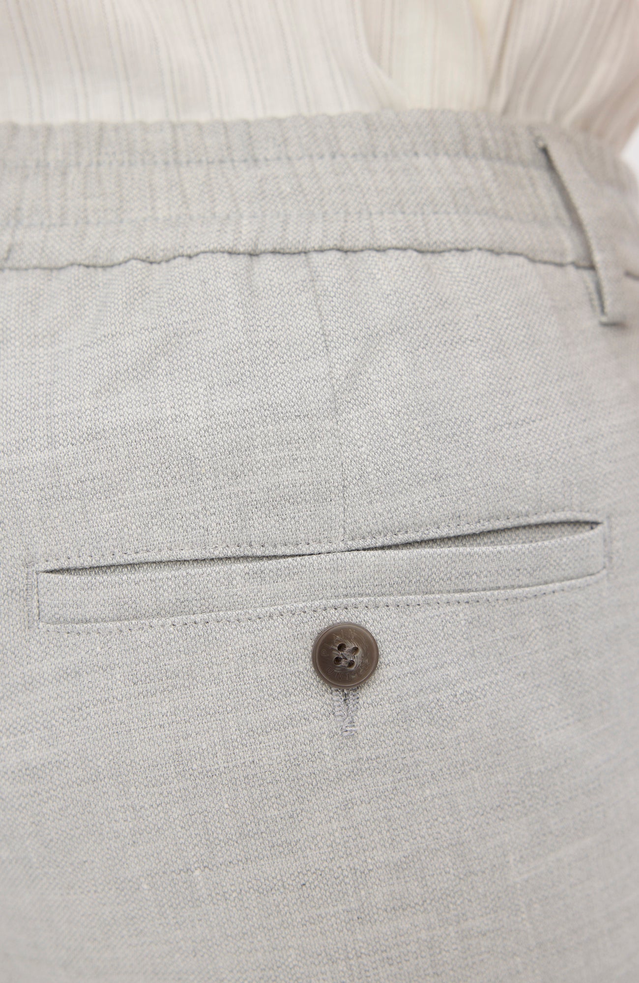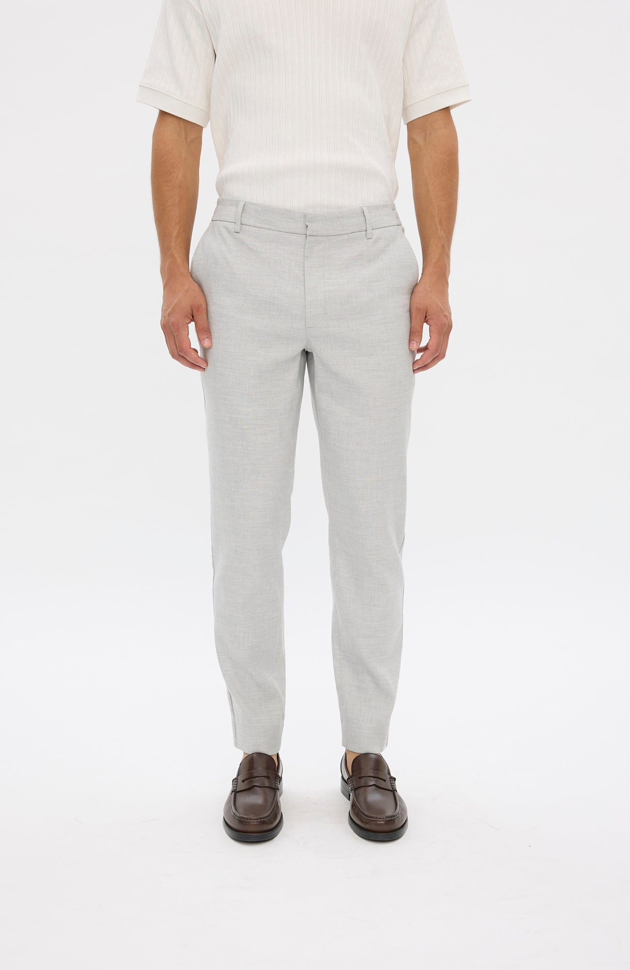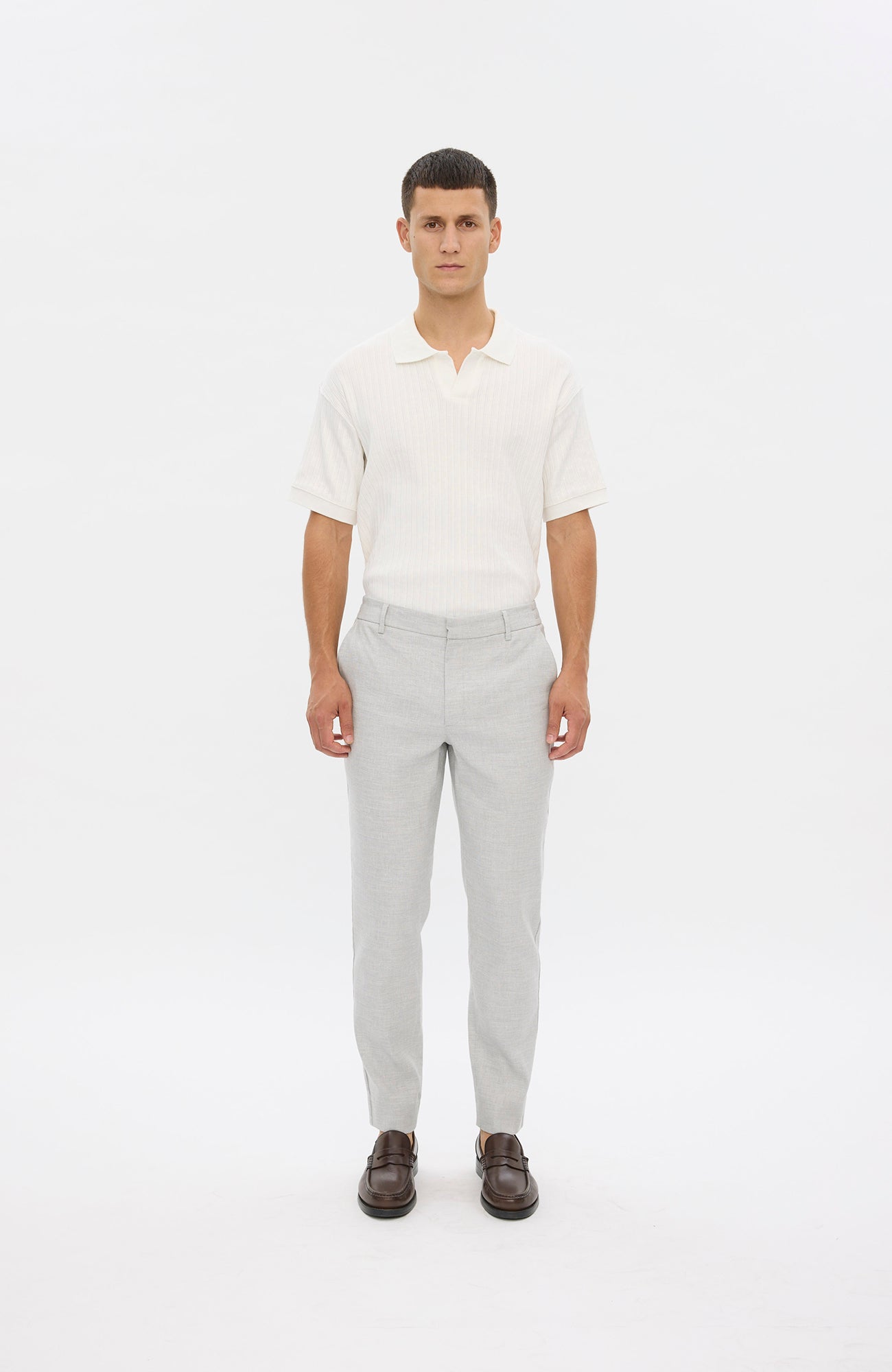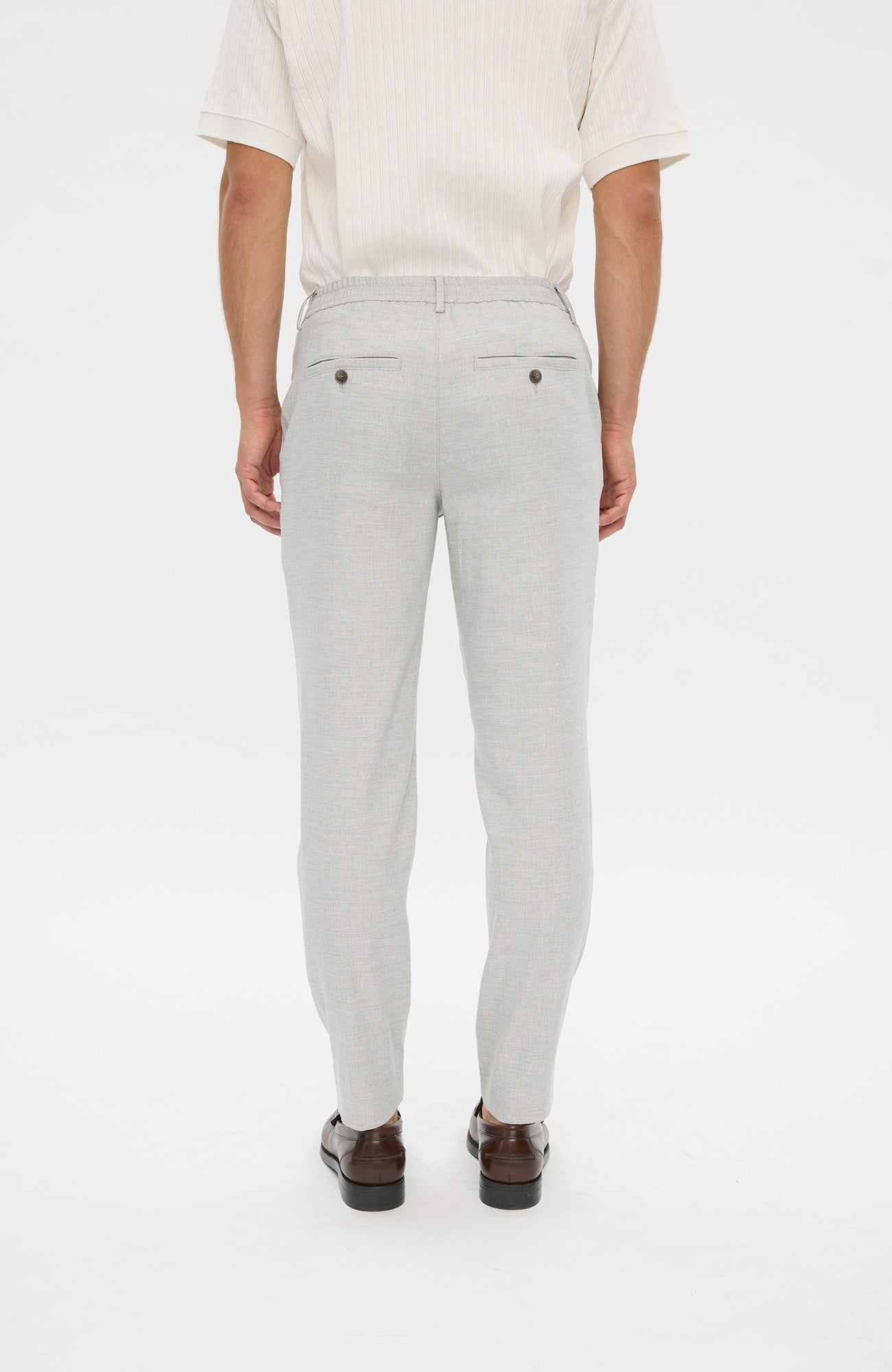 TheoPL er 'tapered-fit’ bukser designet til at sidde på hofterne. For en balance mellem udseende og komfort har de en standard, formel talje foran, en elastisk bånd på bagsiden, to skrå frontlommer og to paspolerede baglommer. Designet i København.