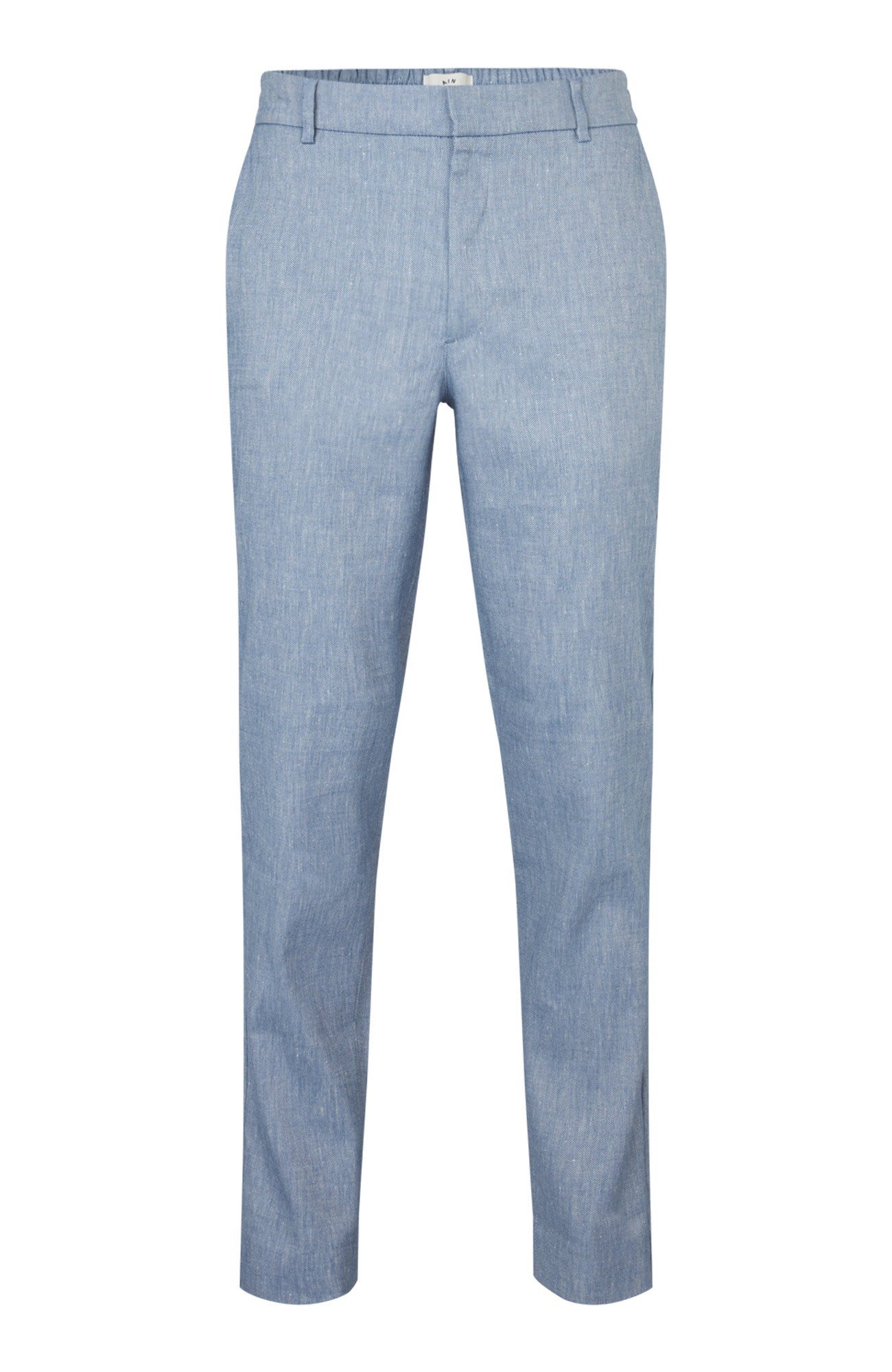 TheoPL er 'tapered-fit’ bukser designet til at sidde på hofterne. For en balance mellem udseende og komfort har de en standard, formel talje foran, en elastisk bånd på bagsiden, to skrå frontlommer og to paspolerede baglommer. Designet i København.