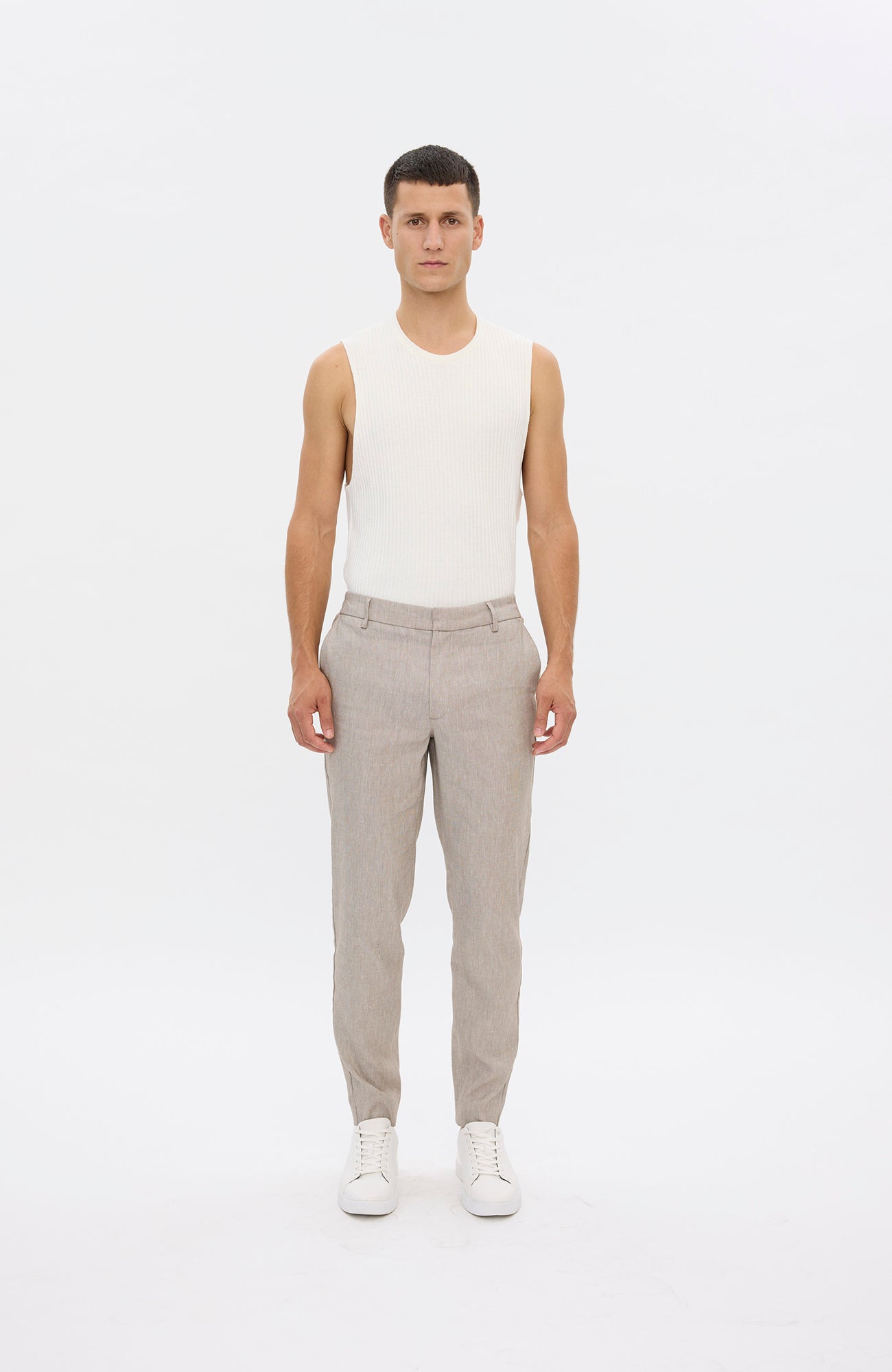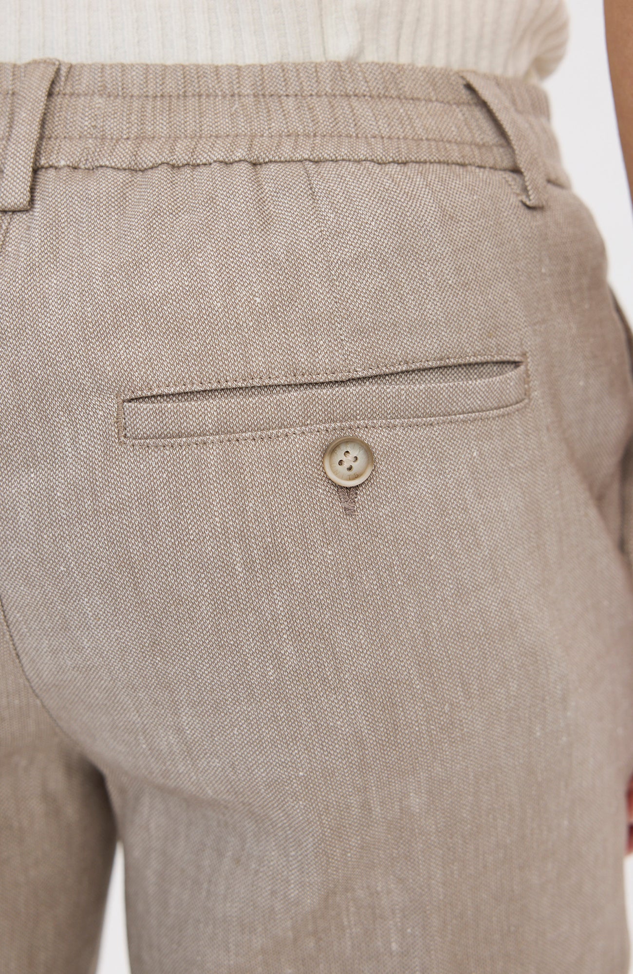 27% Genanvendt Polyester, 14% Viskose, 56% Hør, 3% Elastan, Skånsom vask ved 30 grader, Må ikke bleges, Må ikke tørretumbles, Stryges ved lav temperatur, Kemisk rens med alle opløsningsmidler undtagen trichlorethylen