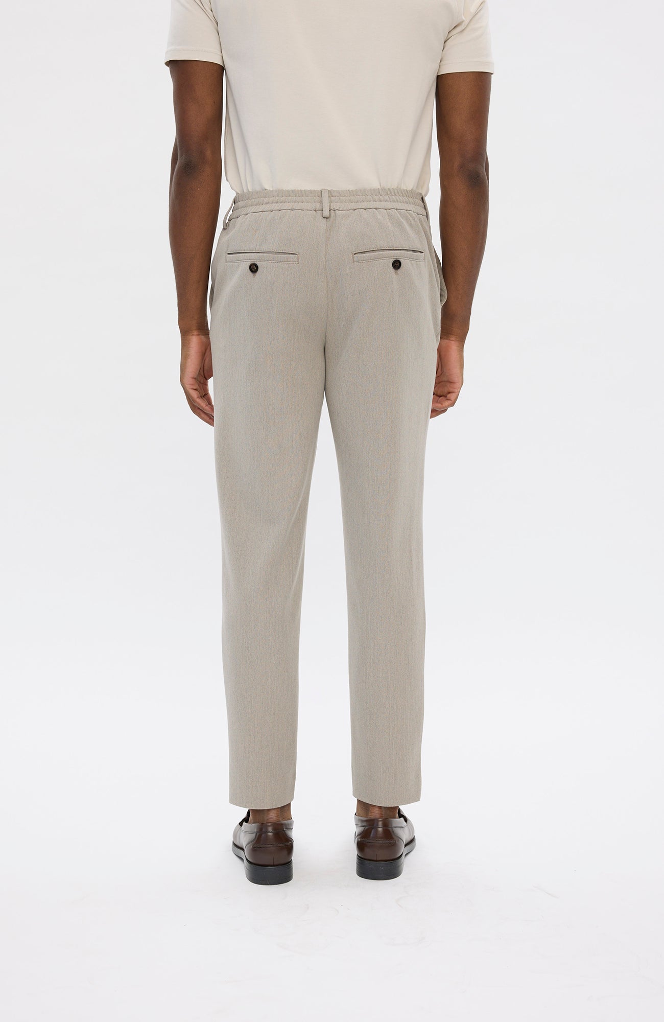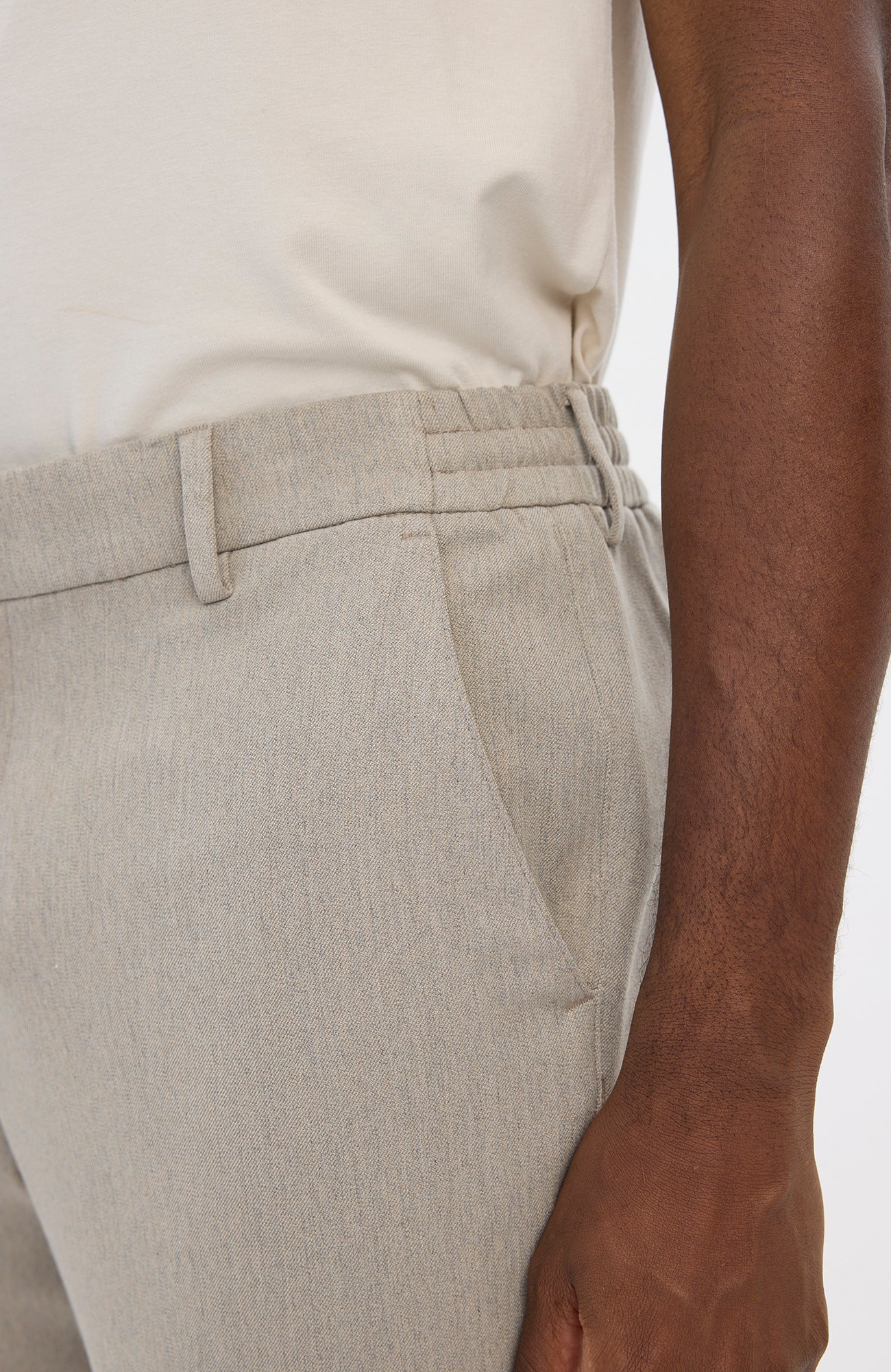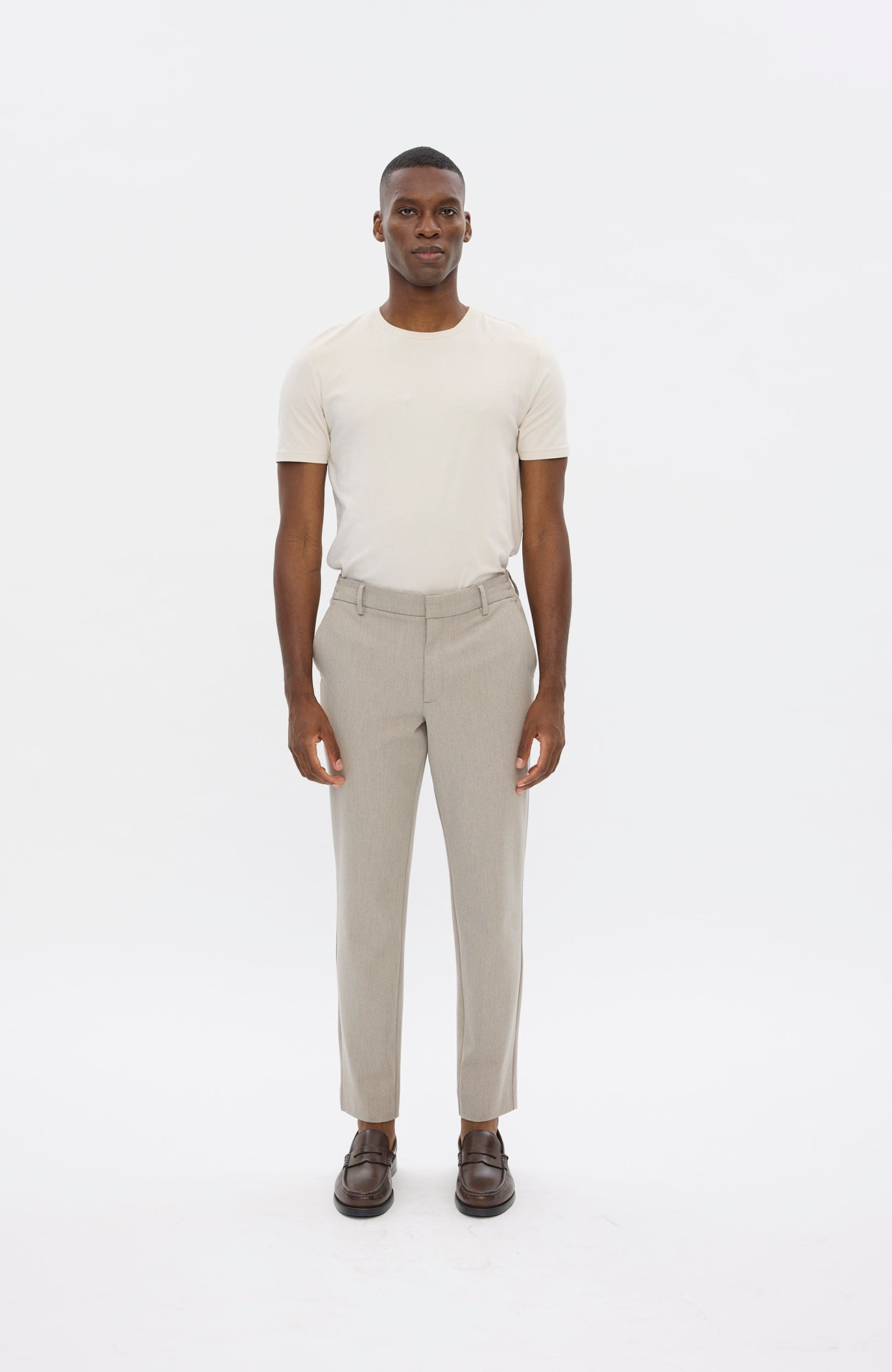 TheoPL are tapered trousers designed to sit mid-waist. Detailed with the hallmarks of tailoring, including front slant pockets, back welt pockets and a concealed hook and bar fastening, the versatile pair feature an elasticated back waistband for added comfort and are equally suited to casual and formal occasions. Designed in Copenhagen and made by specialists in Turkey.