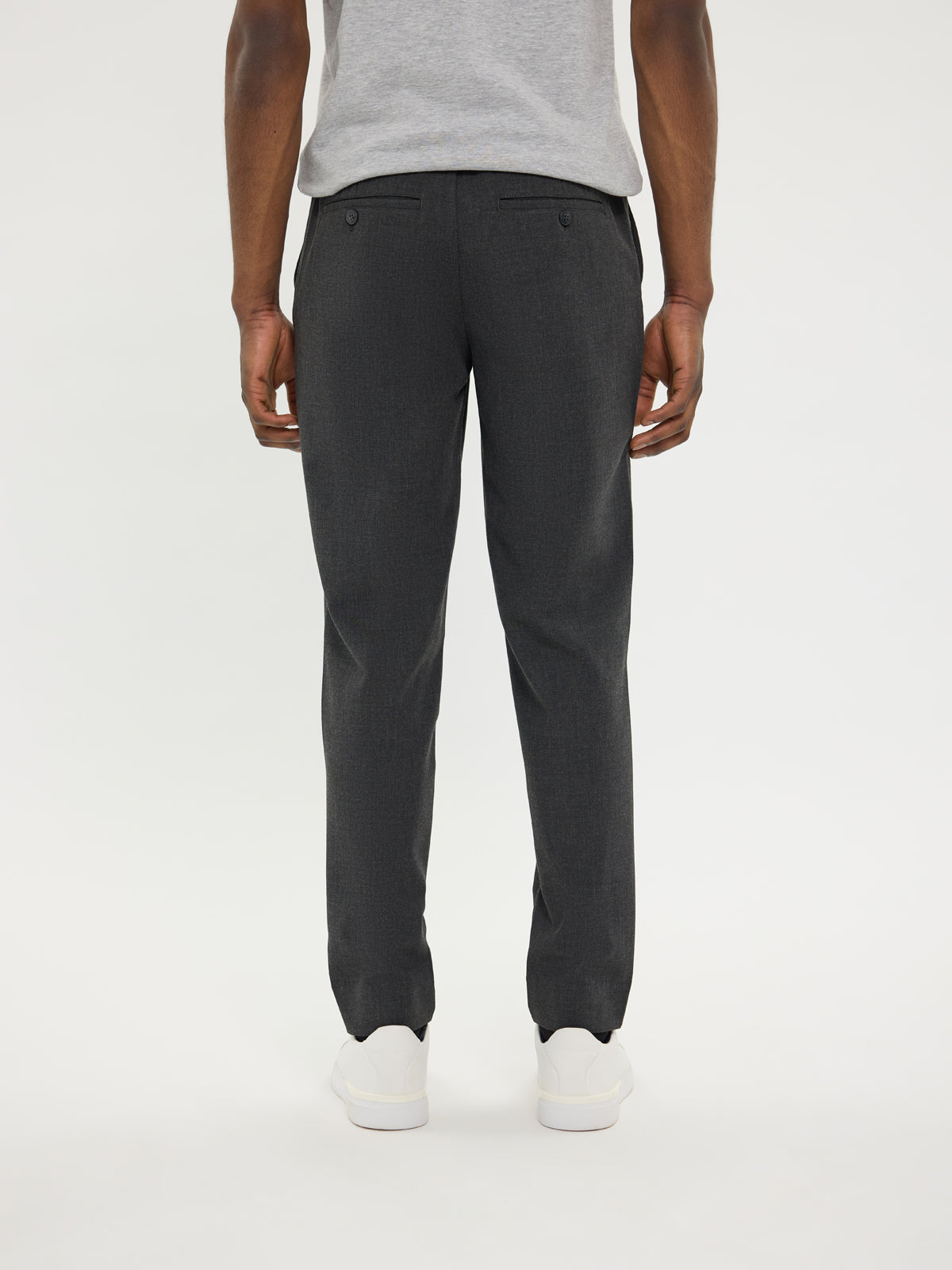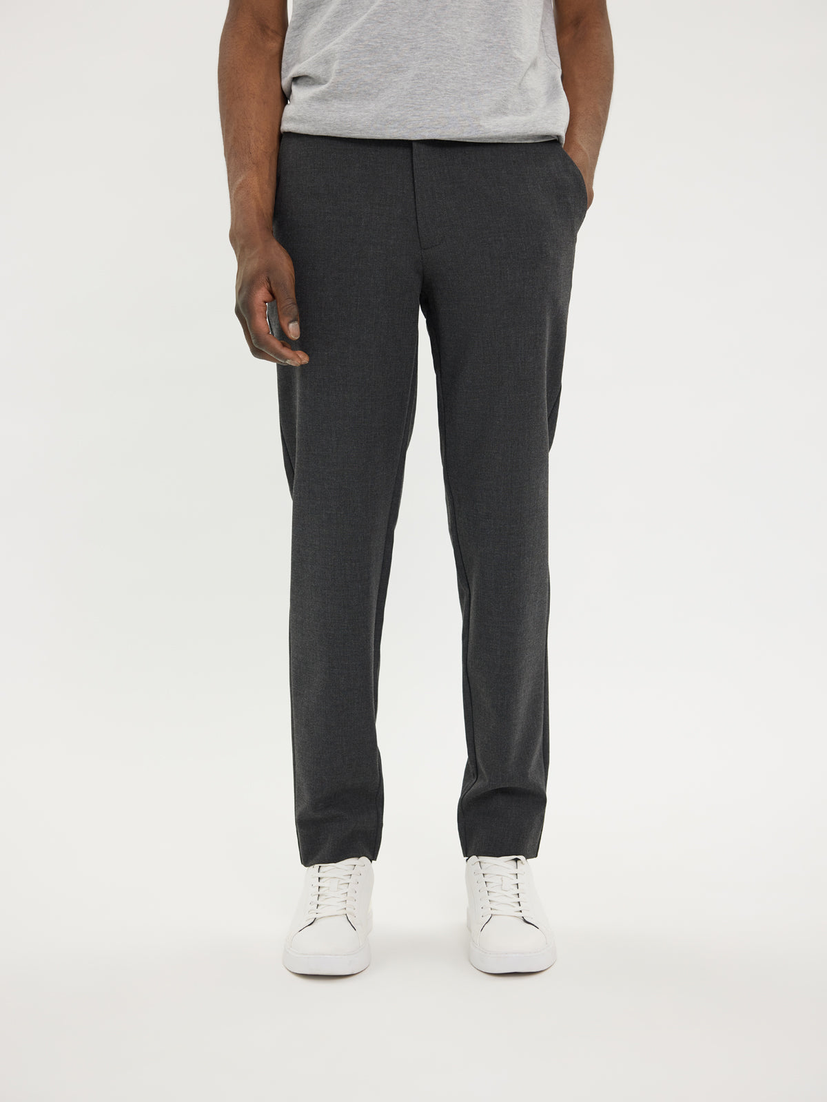 TheoPL er 'tapered-fit’ bukser designet til at sidde på hofterne. For en balance mellem udseende og komfort har de en standard, formel talje foran, en elastisk bånd på bagsiden, to skrå frontlommer og to paspolerede baglommer. Designet i København og fremstillet af specialister i Kina.