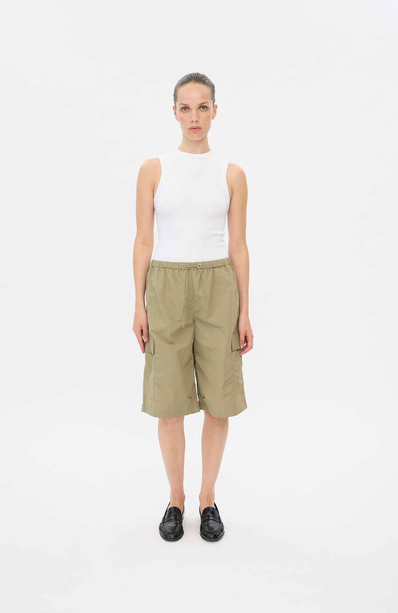 Relaxed mid waisted shorts with elastic waistband and drawstring. Features slanted front pockets, patch pockets with Velcro flaps, and clean hemline. Designed in Copenhagen.